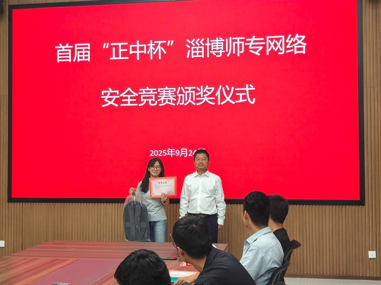 由淄博师专信息网络中心主办、信息系协办、山东正中信息技术有限公司提供技术支持的第一届“正中杯”网络安全竞赛于2025年9月17日成功举办。9月29日,赛事颁奖仪式在北院区附属楼会议室举行。